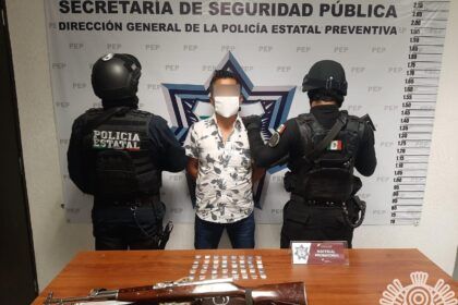 En Huauchinango, Policía Estatal detiene a hombre que portaba un “cuerno de chivo”