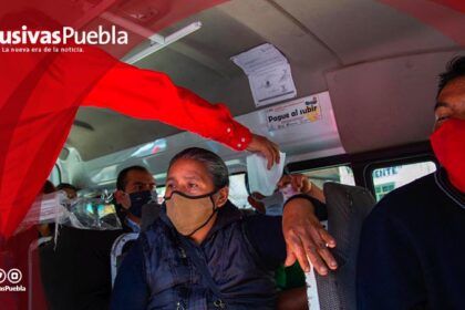 Distribuyen cubrebocas a usuarios de transporte público en San Andrés Cholula
