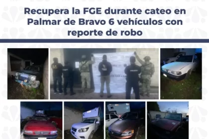 Recupera la FGE durante cateo en Palmar de Bravo 6 vehículos con reporte de robo