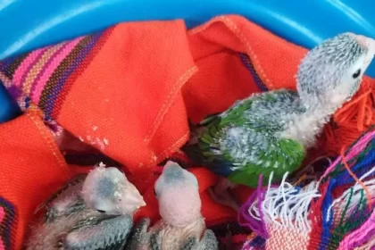 Profepa recuperó los tres polluelos de perico atolero frente naranja, (Eupsittula canicularis),…