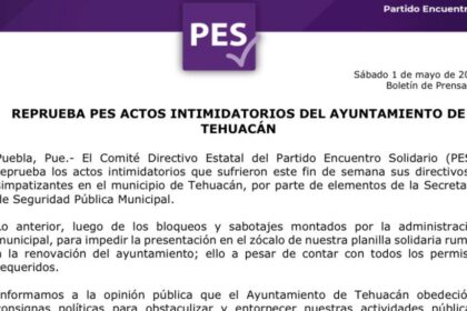 Policía de Tehuacán impide presentación de planilla del PES