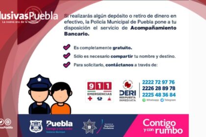 Policía Municipal de Puebla exhorta a cuentahabientes a solicitar el servicio de acompañamiento bancario