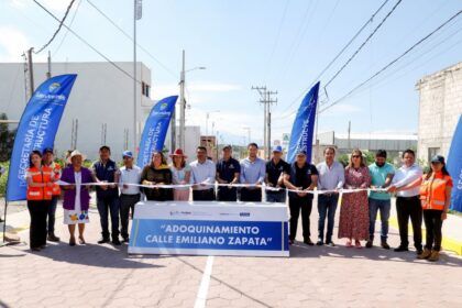 Inaugura Mundo Tlatehui adoquinamiento de la calle Emiliano Zapata en Tlaxcalancingo