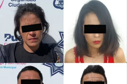 Policía Municipal de Puebla detiene a cuatro sujetos por robo a usuarios del transporte público y transeúnte
