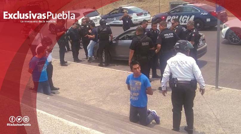 La tarde de este miércoles, tres estudiantes de Medicina y elementos de seguridad de los tres órdenes de gobierno protagonizaron una persecución, la cual inició en la autopista Puebla-Tlaxcala y concluyó frente a la Estrella de Puebla, donde finalmente los sujetos quedaron liberados luego de que se descartó su participación en un asalto. De acuerdo con la Policía Federal, los hechos ocurrieron cuando, al circular sobre la autopista Puebla-Tlaxcala, a la altura del kilómetro 6, un hombre se atravesó en el camino para pedir ayuda y detener a los conductores de un automóvil Jetta de color gris, quienes lo habían asaltado. La víctima aseguró que en el municipio de Zacatelco, Tlaxcala, un grupo de sujetos lo increpó para después despojarlo de una motocicleta, así como otras pertenencias y llevárselo a él en un automóvil Volkswagen Jetta gris, con vidrios polarizados, para después dejarlo abandonado a un costado de la carretera Puebla-Tlaxcala.